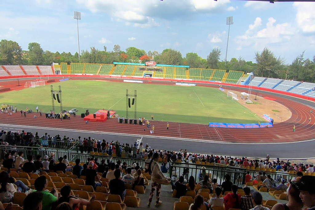 Sân vận động này từng vinh dự đăng cai môn bóng đá nữ vào SEA Games 22. Sân được chia làm 4 khán đài chính. Trong đó, khán đài A có sức chứa 15000 người có 2 tầng và mái che toàn bộ. Còn khán đài B thiết kế 2 tầng có mái che hướng Tây Nam. Sức chứa khủng lên đến 10.000 người. Khán đài C và D của sân xa cầu môn nhất và không có mái che, sức chứa đạt 2500 người/khán đài.